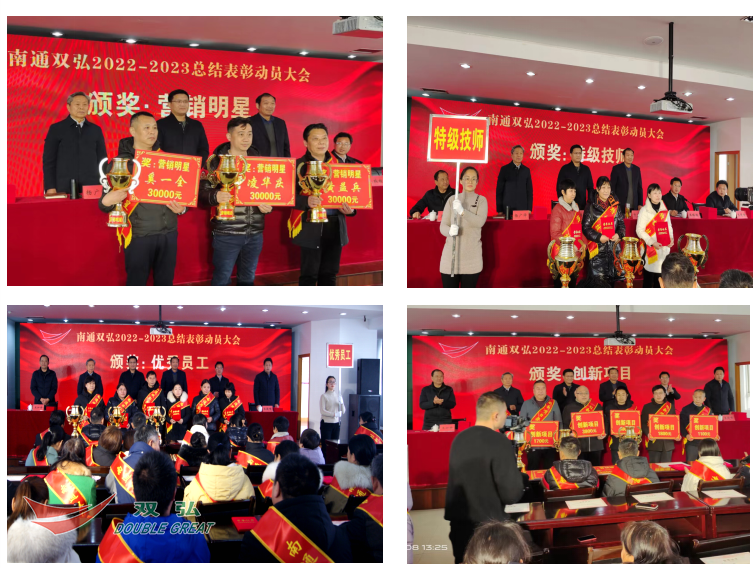 Diligence prináša skoro na jar a je čas sa pohnúť vpred. 8. februára sa Nantong Double Great Company usporiadala veľké stretnutie s cieľom zhrnúť a pochváliť 2022 rokov a mobilizovať prácu na rok 2023. Oceňované pokročilé kolektívy, pokročilých jednotlivcov, marketingových hviezd, QC Achievement Award, ktoré získali ocenené skupiny, inovačné projekty, ktorí získali ocenené zástupcovia, všetci členovia strany, senior a stredné manažéri, profesionálne a technické osoby, tím ERS, prevádzkový tím atď.